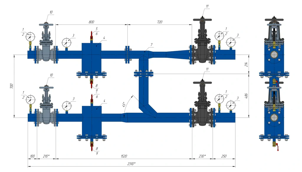 2 задвижки стальные, 2 задвижки чугунные